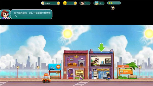 4、商店开业,游戏提示,需要开设更多的商铺,这样赚钱越多。