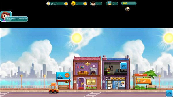 3、商场如战场,抓住时间就等于抓住了商机,游戏中事先设计了一栋公寓和一间商店,玩家首先需要点击商店开始销售货物。
