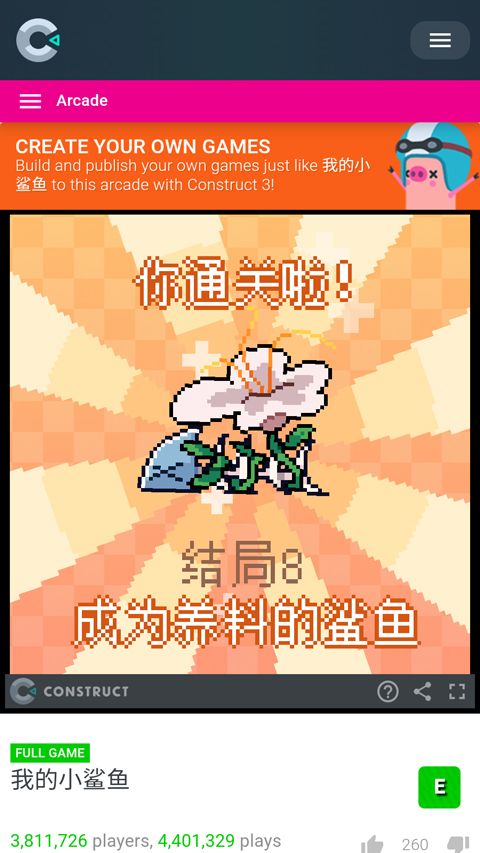 另外,我的小鲨鱼游戏内总共包含11个普通结局和2个最终结局,玩家对小鲨鱼做不同的事情,会引导游戏走向不同的结局,如一直给小鲨鱼喂苹果,会让它变成一只占满整个的屏幕的方形鲨鱼,并达成胖胖鲨的结局。感兴趣的朋友还在等什么,快来领养一只电子小鲨鱼吧!