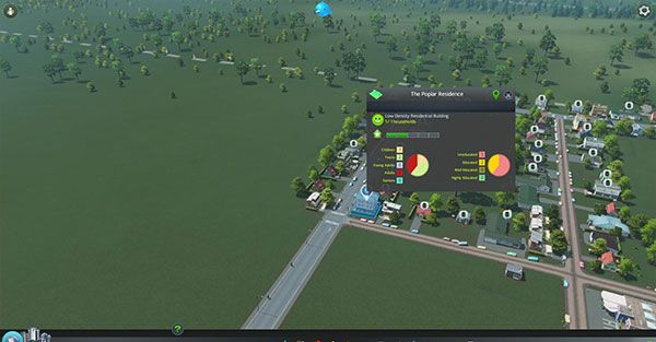 点击住宅能看到家庭的成员年龄分布图和教育程度分布图!教育程度对建筑也有很大的影响,许多工作需要足够的学历才能就任……(就业压力大啊)!工厂也能查到相关的工作需求信息!