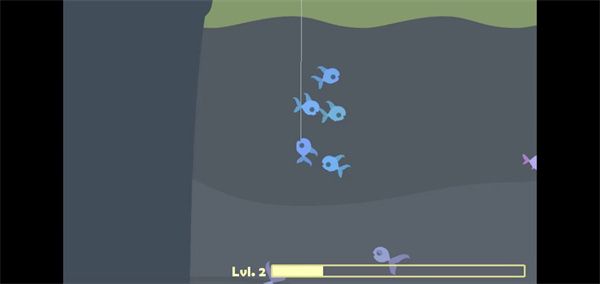 1、首先,玩家在本站下载并安装好游戏之后,打开进入,通过滑动手机屏幕,把鱼钩抛进水中钓鱼;(如果鱼钩没有抛进海里,那就多试几次)