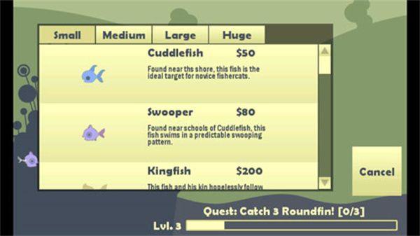 萌萌的小猫和各式各样的鱼类形象生动有趣,为玩家提供了轻松宜人的游戏体验。
