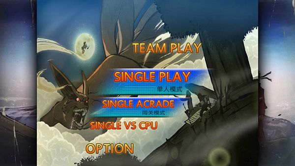 1、打开火影忍者究极风暴4手机版,进入游戏主界面,包括TEAM PLAY联机模式、SINGLE PALY单人模式、SINGLE ACRADE闯关模式和SINGLE VS CPU人机对战模式,玩家可自行选择,这里以单人模式为例,