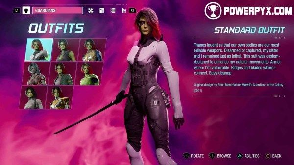 曾作为刺客与罗南、星云、猎人科拉斯一起行动,后来她遇见了魔士亚当后被对方感化而决定反抗自己的养父灭霸,并加入银河护卫队,被称为"宇宙中最危险的女人"。