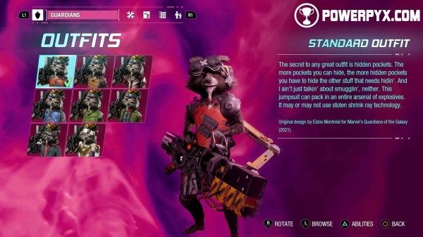 本名火箭(Rocket),是一名宇宙赏金猎人和雇佣兵,一只基因改造会说话的浣熊,火箭浣熊混合了动物和人类的基因,拥有着与地球浣熊一样的嗅觉和感应能力,除此之外他还精通各种武器,是一个优秀的射手,并掌握高超的战术。他是银河护卫队里射击最准的人物,与树人格鲁特(Groot)是挚友。