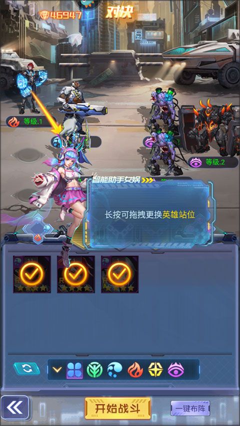 4、长按拖动可以更换英雄站位。
