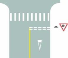 12、驾驶机动车行驶到这个位置时,如果车前轮已越过停止线可以继续通过。