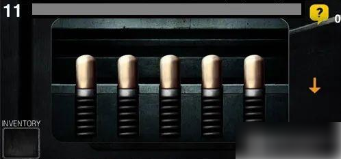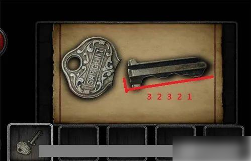 先地上捡到钥匙和工具,把工具插到钥匙孔,再点一下,出来5个柱子,按照钥匙纹路的高低,调整柱子高度为:32321,如下图: