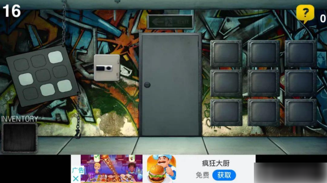 19,先捡墙上的钥匙和地上的钥匙孔,点门锁处,有个数字面板,把数字按1234...789的顺序排好,中间5的位置空出来,把钥匙孔放上去,如下图: