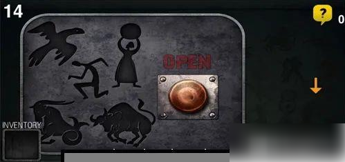 第17关,捡火柴、手套,记住墙上的四个图形:点左边墙洞电打火处有两根电线,