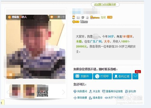 看完信息后,如果觉得对方还不错,想跟对方联系,但是对方不在线,可以留言,也可以发邮件。