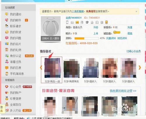 首先用手机注册,注册后可以在网站中看到符合自己条件的或者比较优秀网站自动推荐的优秀男女,单击心仪的男女头像。