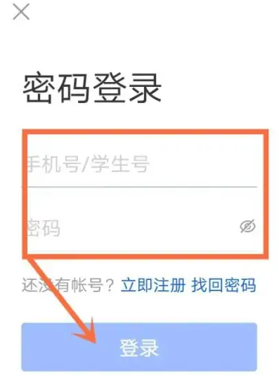 然后进入密码登录界面,输入手机号或学生号,然后再输入密码,点击登录按钮。