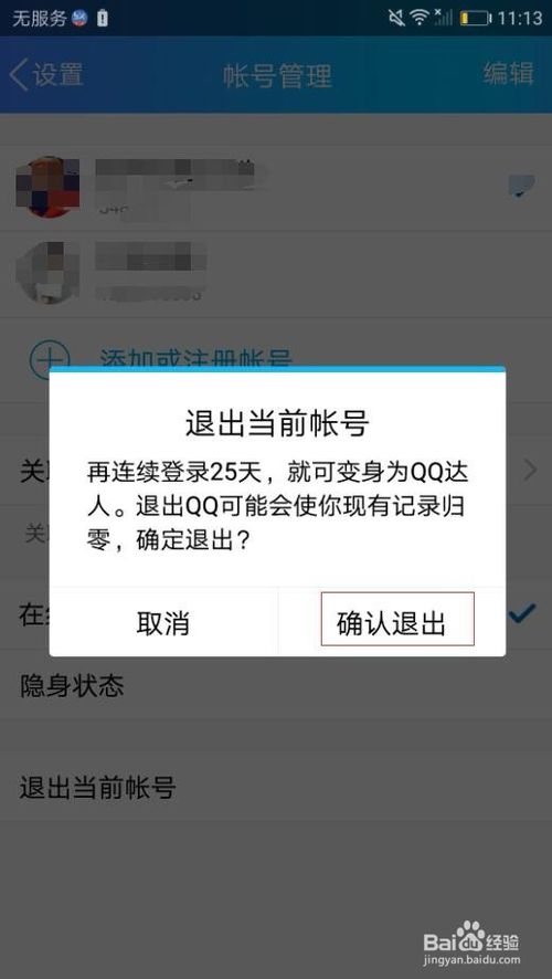 五.出现【退出当前帐号】对话框,点【确认确出】