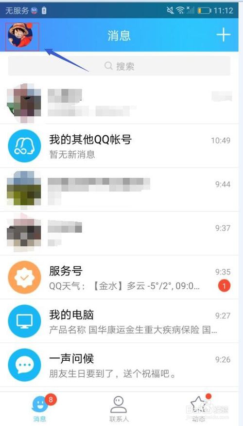 1.点击右上方的自己的QQ图像