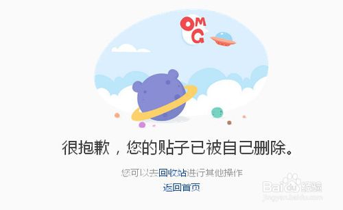 在点击确定之后,就可以看到自己的帖子被自己删除的提示页面。(如下图)