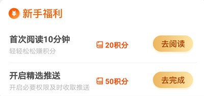 新注册的用户还有3个一次性获得积分的福利。*注册送20积分,*阅读10分钟送20积分,开启精选推送送50积分。总计3次抽奖机会。