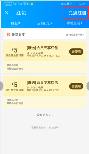 6、在打开的兑换红包的界面中,输入兑换码,点击“兑换”按钮即可。
