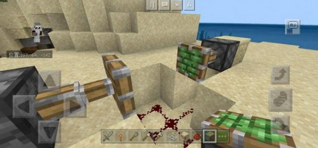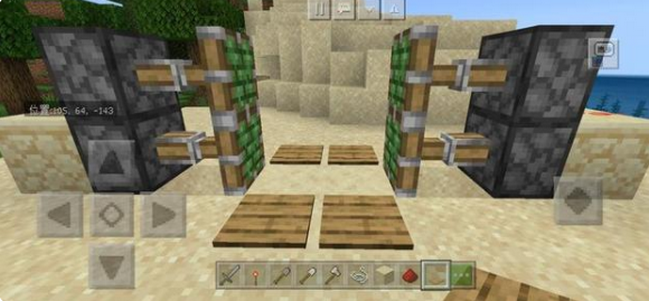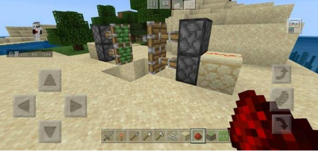 6、然后在黏性活塞上放置要当作门的方块,这样就大功告成了。