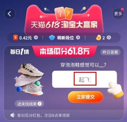 5月29日消息,淘宝的每日一猜活动比较有趣,本场瓜分118万元,品牌是阿迪达斯;