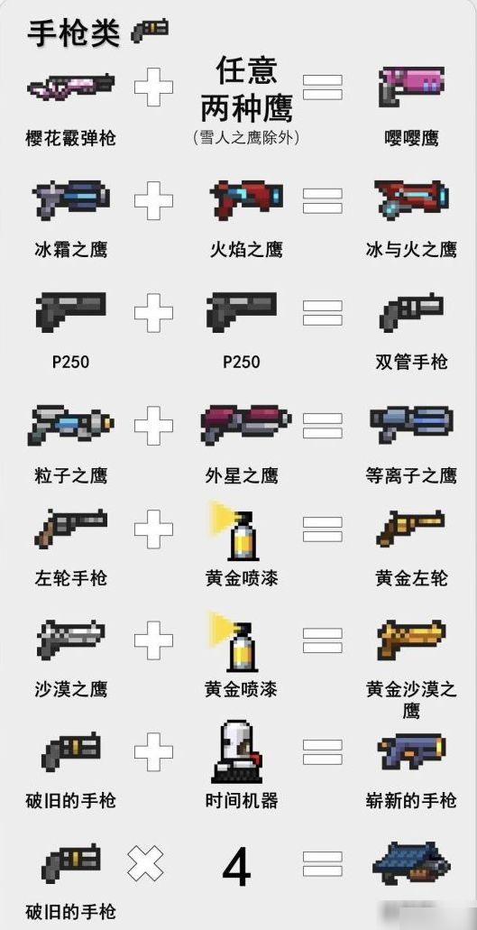 破旧的手枪(可以用崭新的手枪)x4=妙妙枪