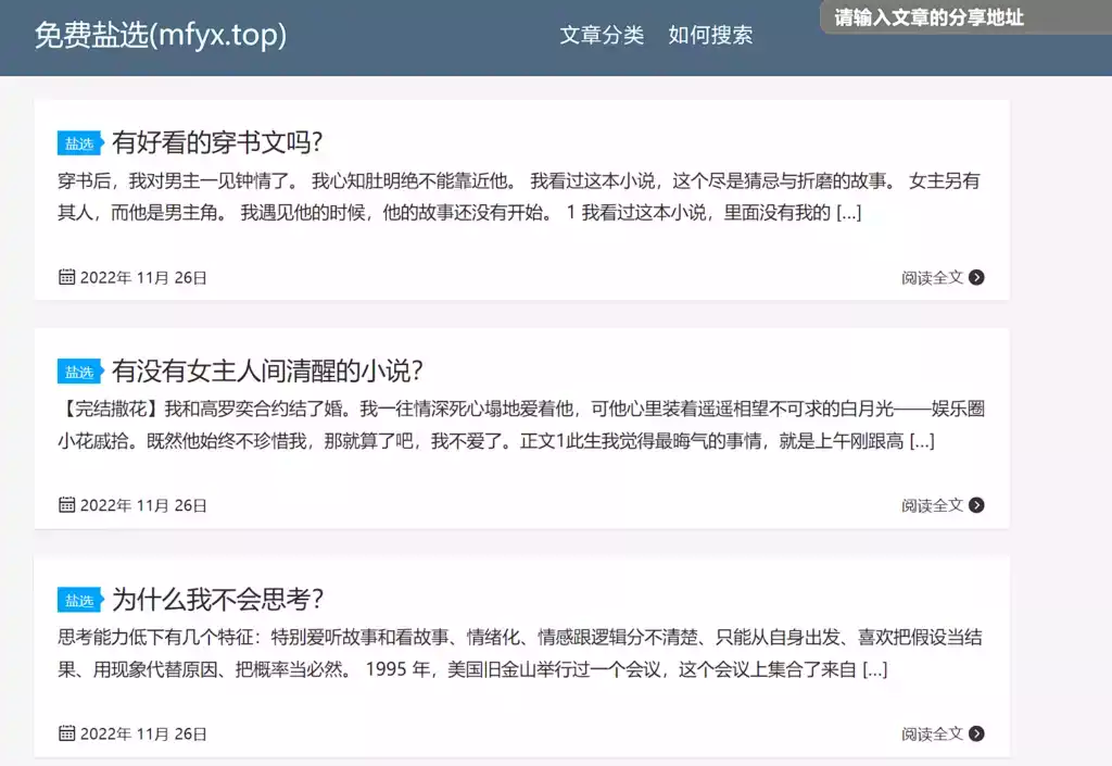 这个网站更是开门见山、直捣黄龙,想看什么小说/文章直接搜就好了。