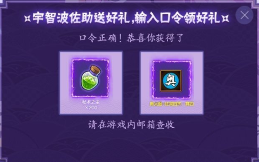 2、口令输入正确后,奖励还有秘术之尘,用户需要在游戏内邮箱中查收。