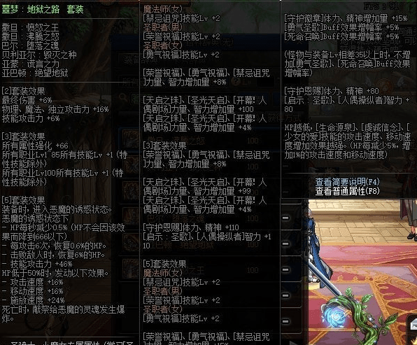 防具方面:噩梦地狱之路的套装效果能够提升66点属强,而且有技能加成与霸体效果。