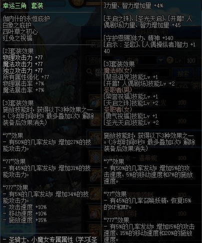 幸运三角套装属性