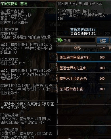 深渊窥视者2件套属性: