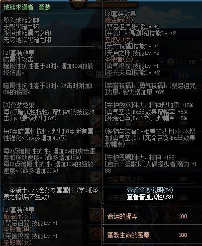 地狱求道者套装属性: