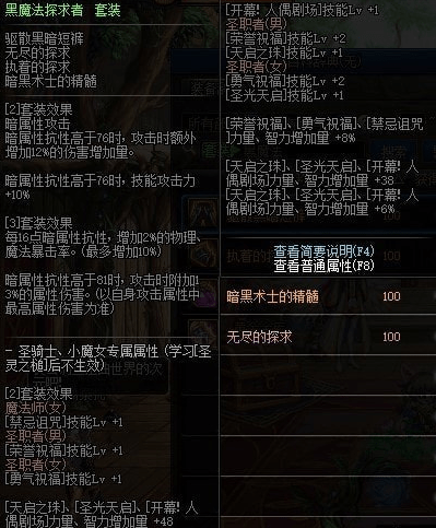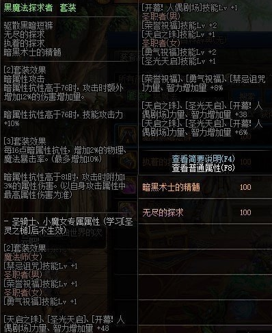 黑魔法探求者套装属性: