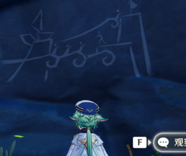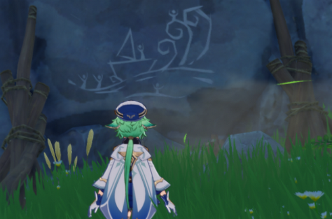第二幅壁画在下边的陆地上,丘丘人也在看呢,不知道他们有没有看懂些什么。