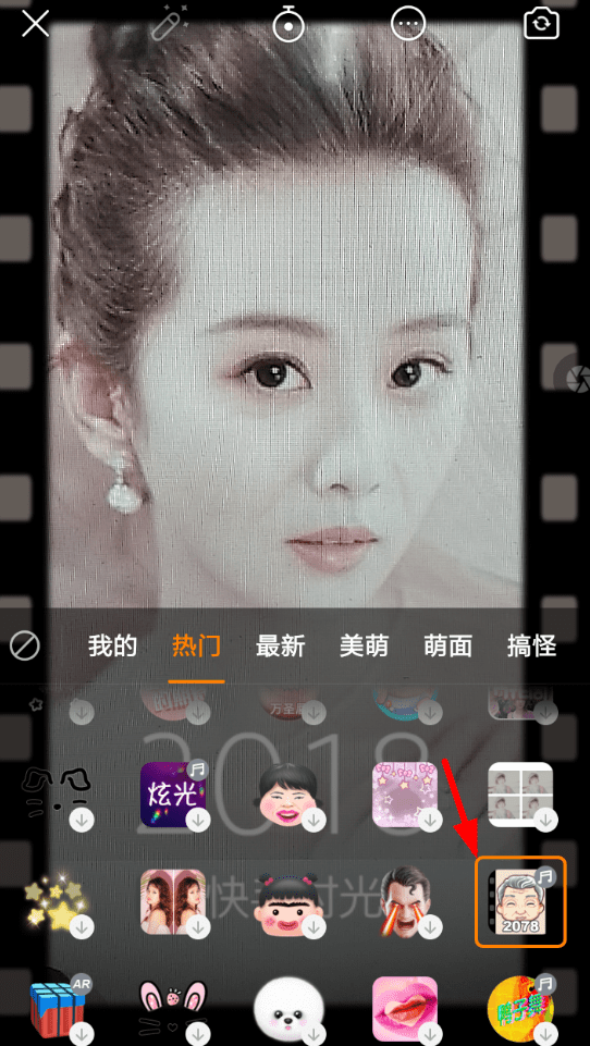 而在热门的分类下方找到并设置时光机*(如下所示),就可以开始录制视频了。而镜头前的用户这时会逐渐添加皱纹效果,让脸部迅速的变老哦!