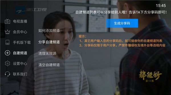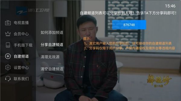 电视家如何分享自建频道分享码?