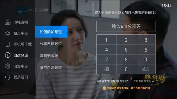电视家如何添加频道分享码?