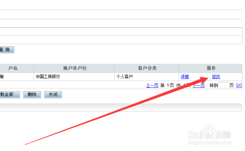 查询到收款方的信息列表后,用户点击列表最右侧的【修改】蓝色字体内容,进行下一步。