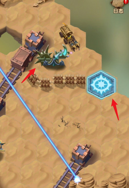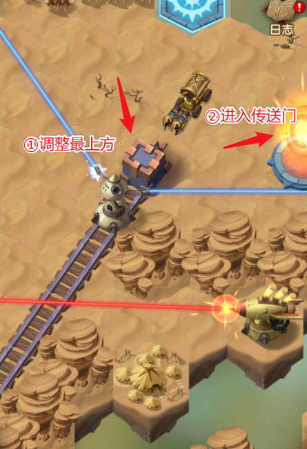 6、点击旁边的轨道机关,将导流器调整至下方,然后去挑战位置2的三个小怪。