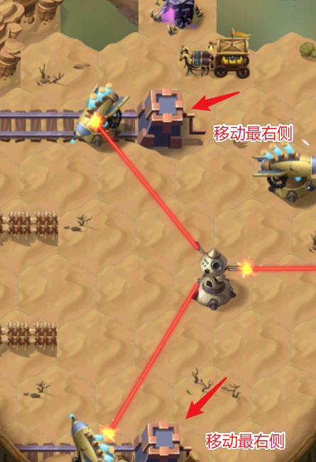 4、去右边分别点击两个轨道机关,将上面的火箭都调整至右边。