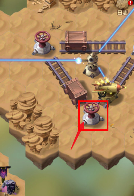 8、用户将自己的马车移动至这个轨道上面,按下右边的轨道机关,移动到右边,这样就能去上面了。
