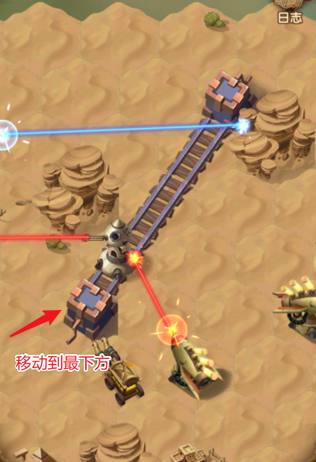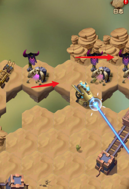 3、四个小怪打完后,再点击下面的轨道机关两次,将导流器调整至下方。