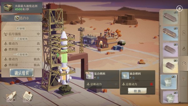 有些朋友说一子的燃料选不了极高 因为是分一子二子的 也就是火箭中间是二子点一下换的是二子的燃料 要换一子的时候点火箭下面黄色部分就行了