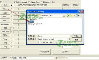打开multiloader v5.67工具,并点击“port search”按钮,等待平台自动设置好选项。此时,如果右下角出现comx ready-[手机型号]字样(例如com5 ready-[lismore]),说明连接成功,可以进行刷机操作。