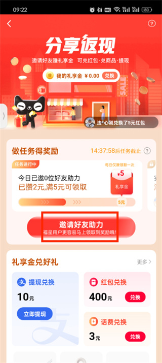 3、最后点击过后来到分享领红包的页面中我们点击【邀请好友助力】之后就可以获得了;