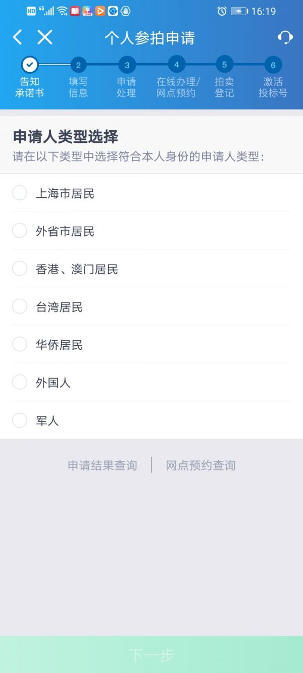 第五步:然后点击进入,选择申请人类型,点击下一步(如下图所示);