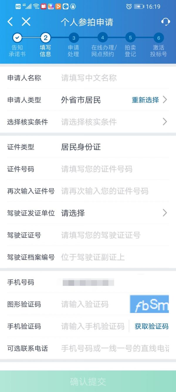 第六步:然后点击进入,填写完善信息,然后点击“确认提交”,进行申请处理,完善在线办理,登记激活投标号即可申请(如下图所示)。