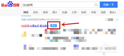 搜出结果找到带有“官方”标识的链接点击进入QQ空间的登录页面;