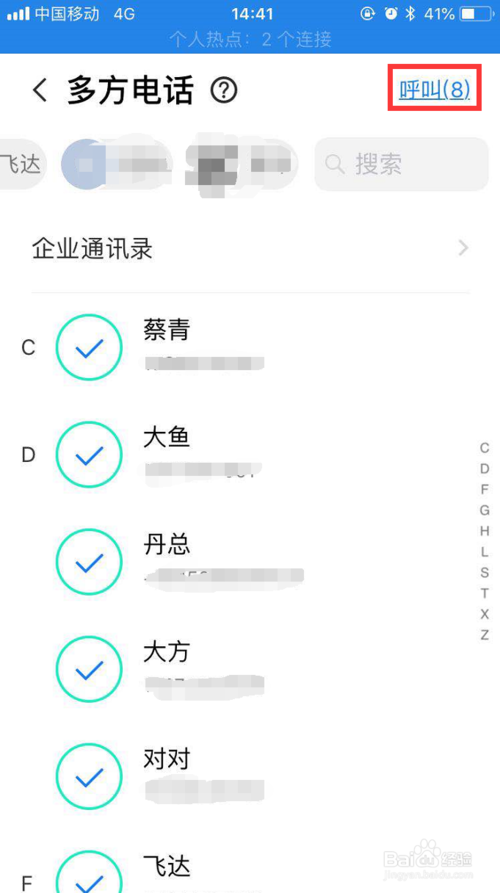进入联系人页面,勾选所需要拨打的目标,每次*多支持2-9人同时通话,即可勾选1-8人。