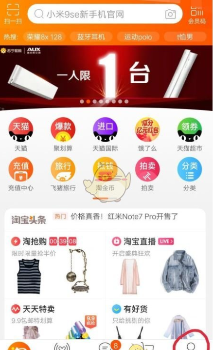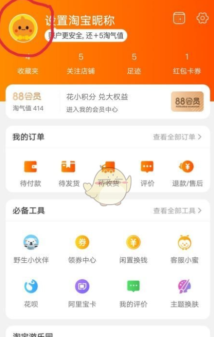 2、点击淘宝“头像”