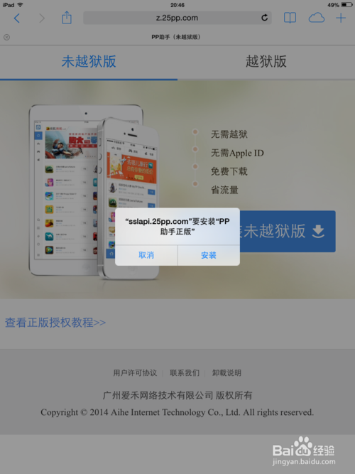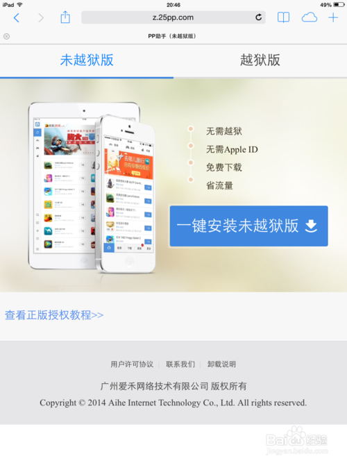 2、进入网页,可以选择未越狱版 点击【一键安装未越狱版】按钮